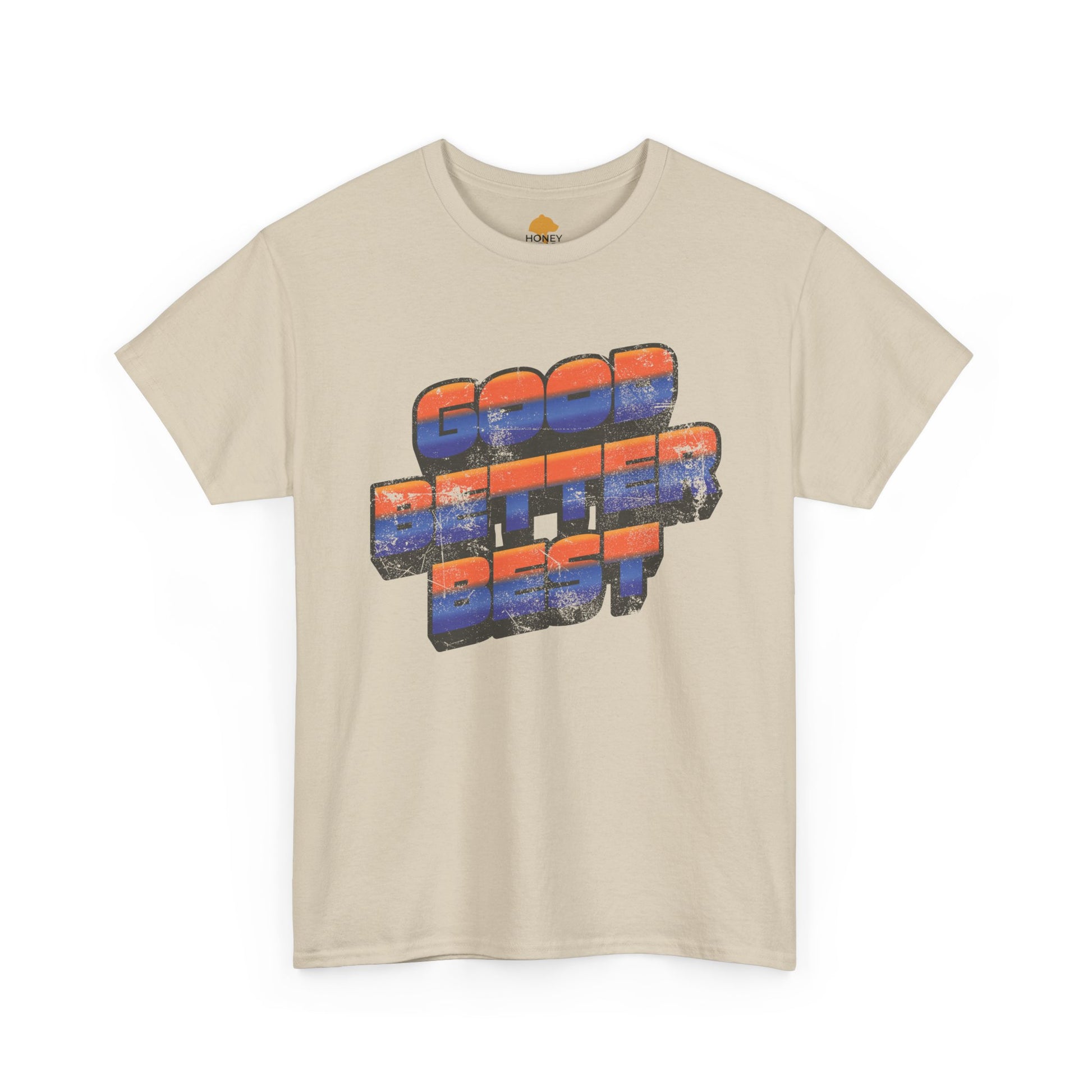 This retro-inspired crewneck tee brings chill comfort and old-school charm to everyday life. The retro-style “Good Better Best” across the chest gives a playful, competitive edge - great for cheering at the game, running quick errands, or lounging between plans. The clean crew neckline and classic fit keep the silhouette simple and familiar. Whether you’re heading to a tailgate, a study session, or grabbing coffee, this shirt slips into your routine and adds a touch of retro team spirit.