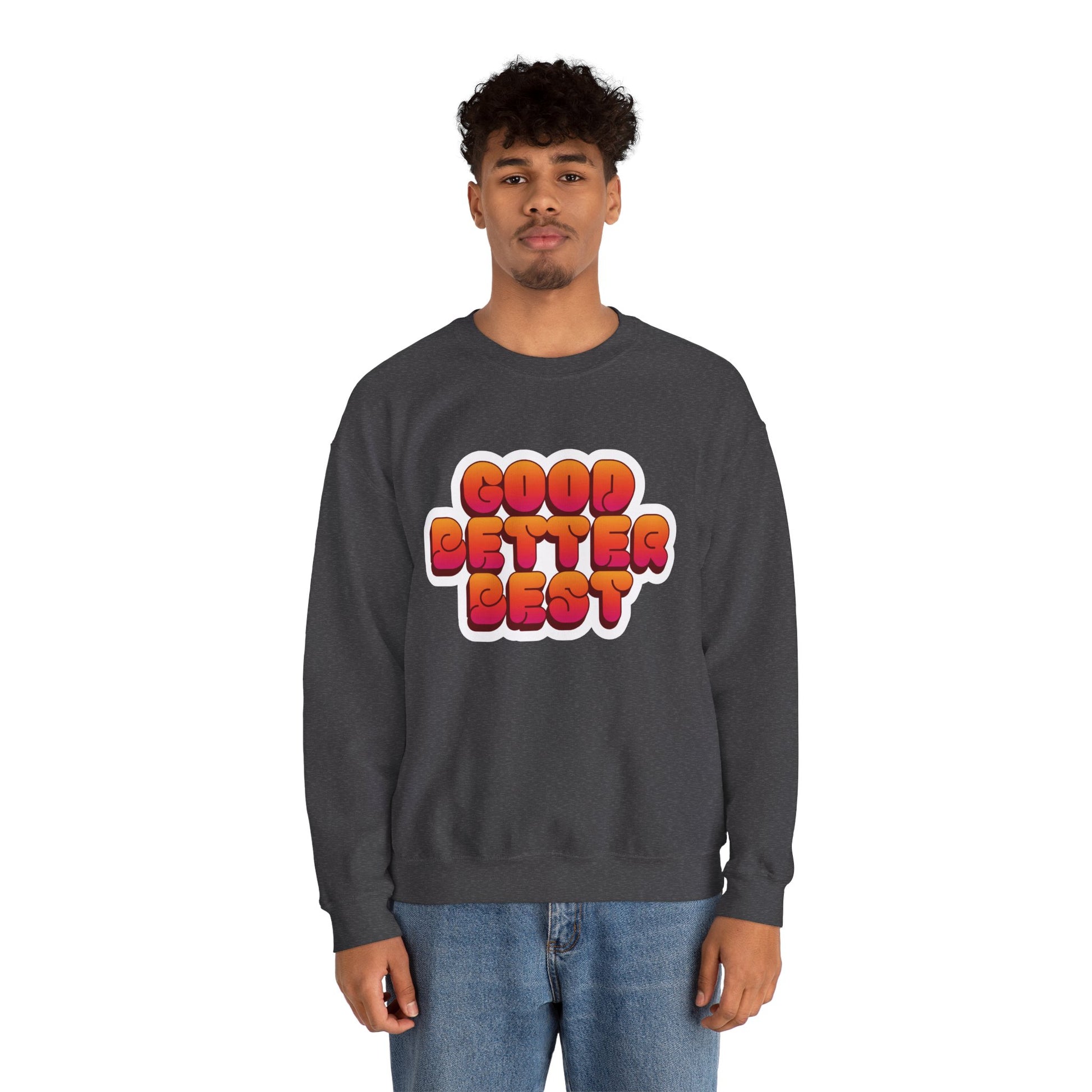 This retro-inspired crewneck brings chill comfort and old-school charm to everyday life. Soft, medium-weight fabric wraps you in warmth without feeling bulky, while the retro-style “Good Better Best” across the chest gives a playful, competitive edge — great for cheering at the game, running quick errands, or lounging between plans. The clean crew neckline and classic fit keep the silhouette simple and familiar. Built with durable double-needle stitching and thoughtful details like a tear-away label, it’s made to last and to be reached for on cool mornings and late nights alike. Whether you’re heading to a tailgate, a study session, or grabbing coffee, this sweatshirt slips into your routine and adds a touch of retro team spirit.
