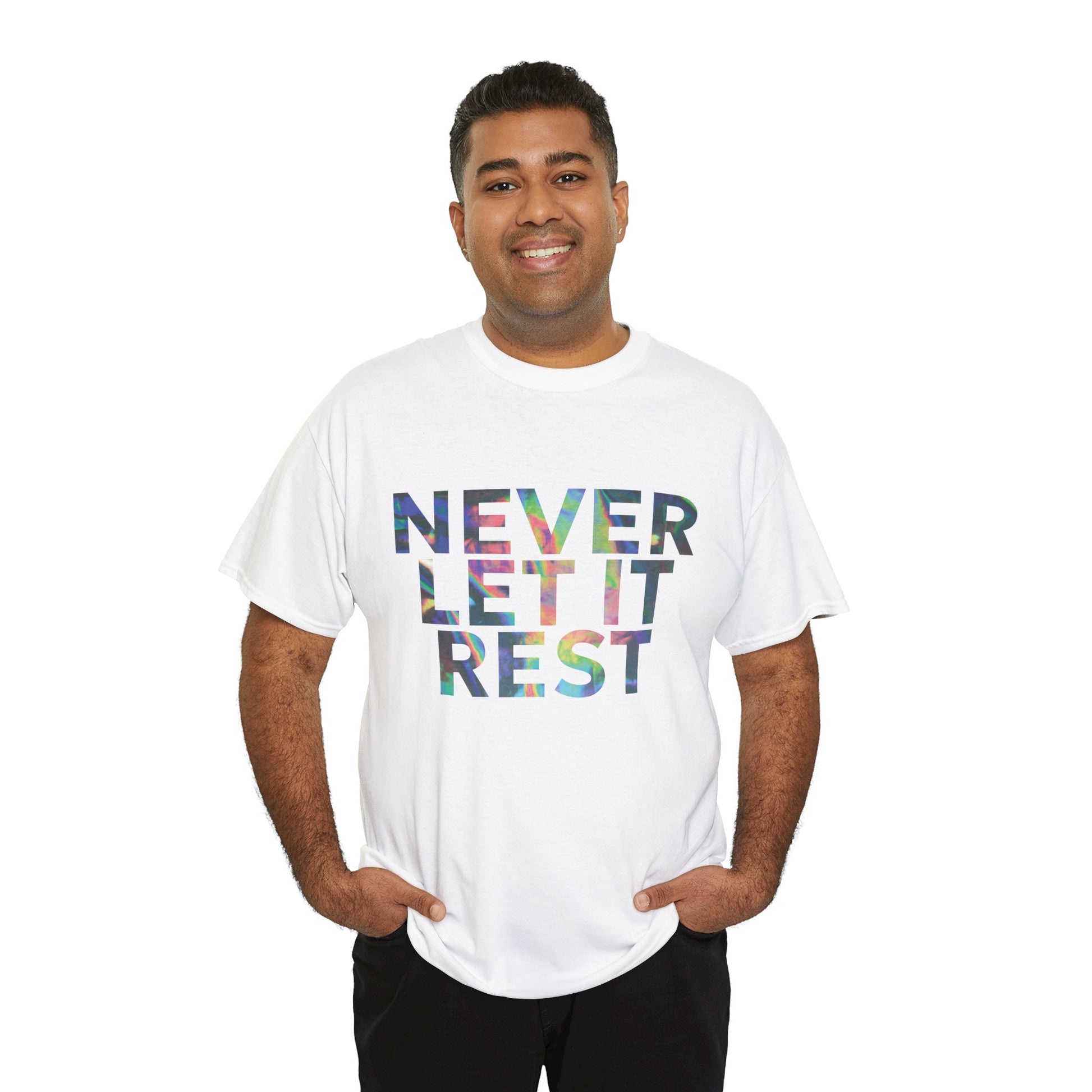 This retro-inspired crewneck tee brings chill comfort and old-school charm to everyday life. The retro-style “Never Let It Rest” across the chest gives a playful, competitive edge - great for cheering at the game, running quick errands, or lounging between plans. The clean crew neckline and classic fit keep the silhouette simple and familiar. Whether you’re heading to a tailgate, a study session, or grabbing coffee, this shirt slips into your routine and adds a touch of retro team spirit.