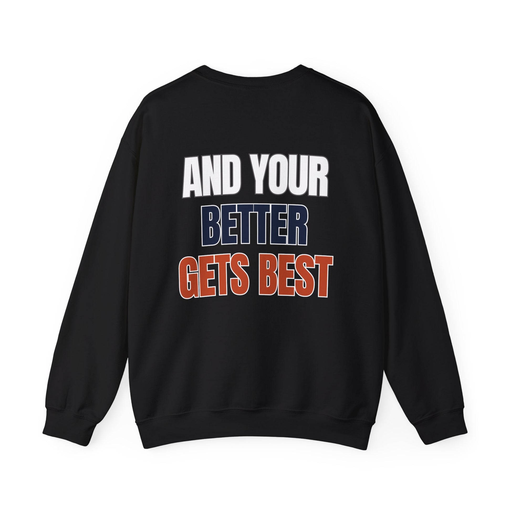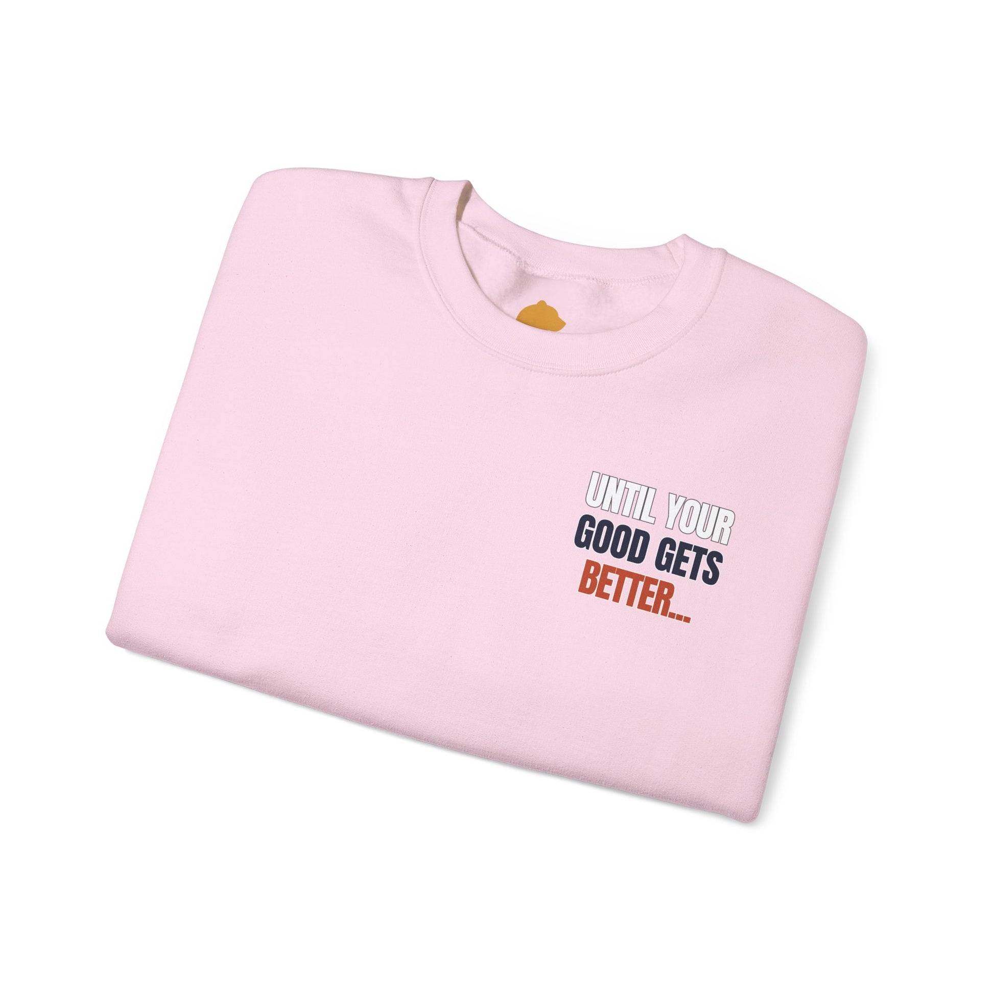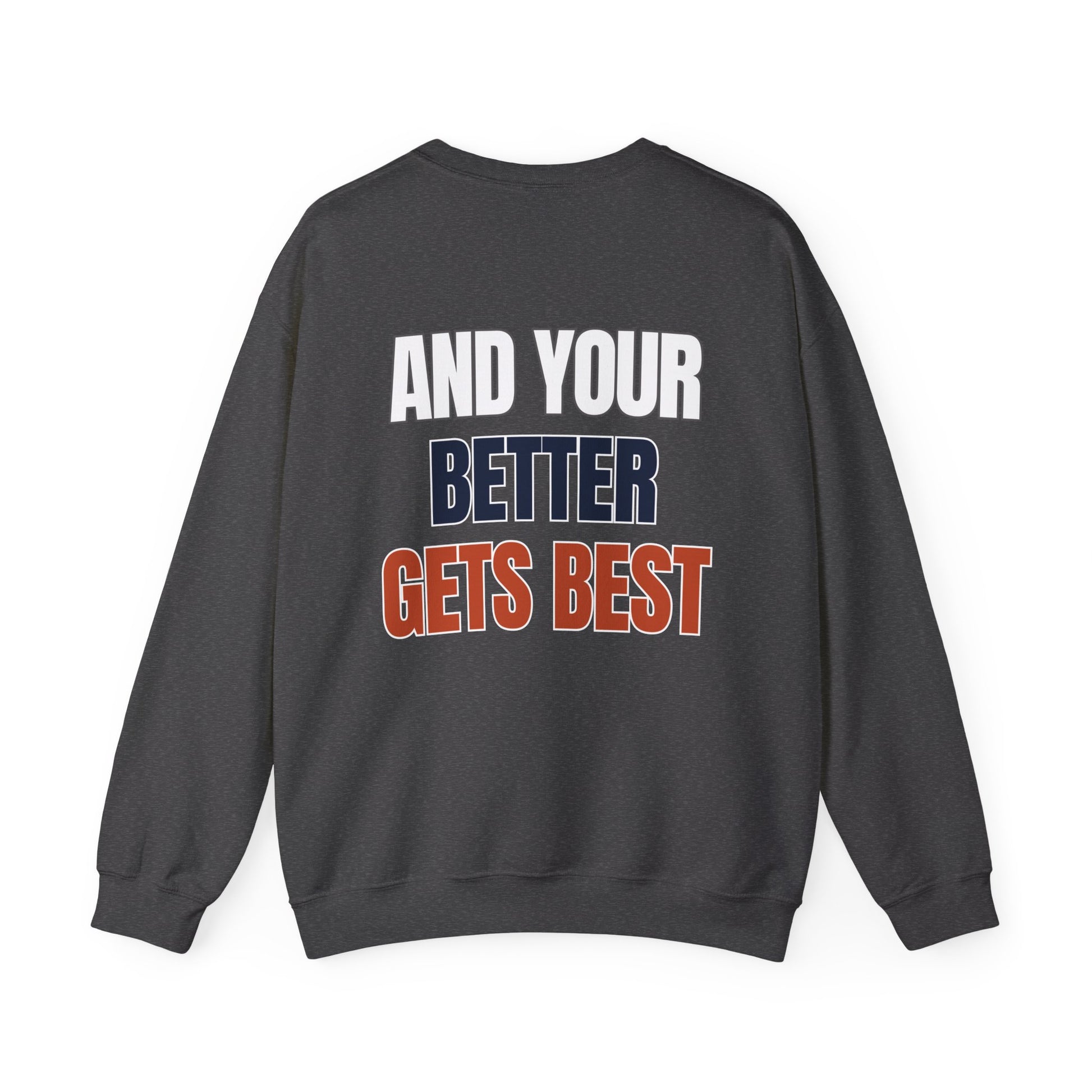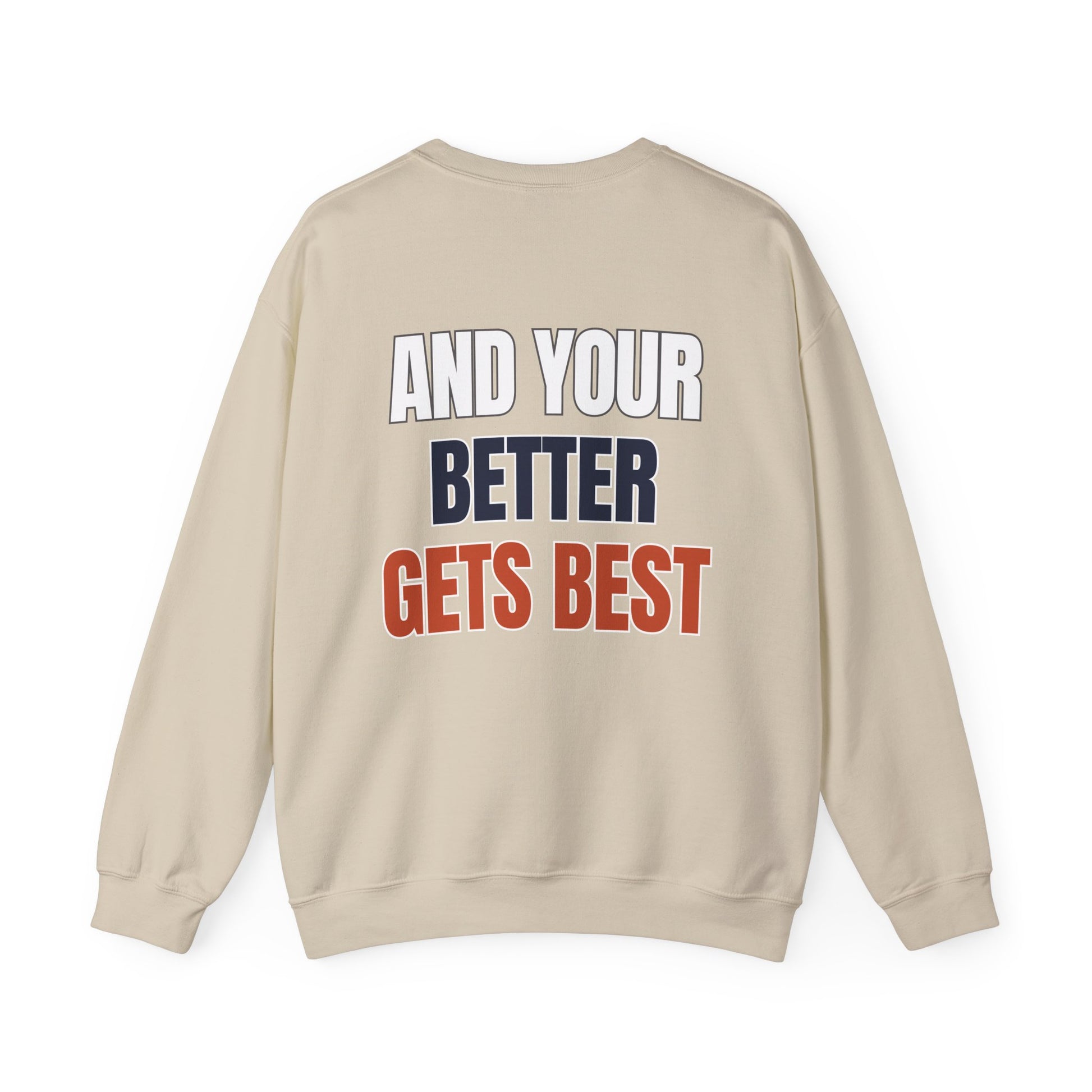Soft, roomy, and quietly bold — this crewneck feels like a steady hand on a restless day. The clean canvas carries a small, hopeful line over the heart and a larger, confident affirmation across the back in deep navy and warm rust. Wear it when you want comfort without compromise: layered over a tee for late walks, pulled on after a long practice, or when you need a wearable reminder that progress is happening. The classic cut settles into the shoulders and hangs with easy confidence. Subtle embroidery and tidy ribbing keep the look refined, while the medium-heavy cotton blend holds shape and warmth through seasons.
